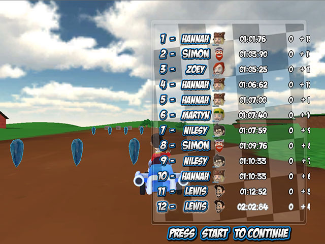 《YogsCart》是一个简单的赛车游戏,不仅画面简单,跑道和玩法也很简单,不需要玩家太高的技巧,不过想要冲的第一的话还是需要好好磨练下的,即使如此,游戏的氛围依然很轻松,放松心态来比赛,相信你也一定可以获得冠军的。