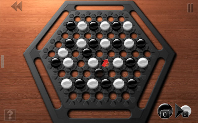 游戏的规则很简单:每次可直线移动一颗、两颗或三颗棋子,或平行式移动;推动对手的棋子,三推二、三推一或二推一。先将对手的6颗棋子推出界外者,即获胜。