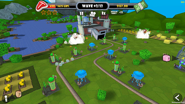 游戏中玩家扮演的就是一位黑心农民,他总是过度喂养所有的动物们,不止是小鸡小鸭之类的小动物,牛羊等大型动物也难逃毒手。在动物们传送的必经之路上,玩家需要安插好各类防御塔对它们发射各种食物激素等,让动物变得比正常状态下大几倍后再进入工厂进行加工。
