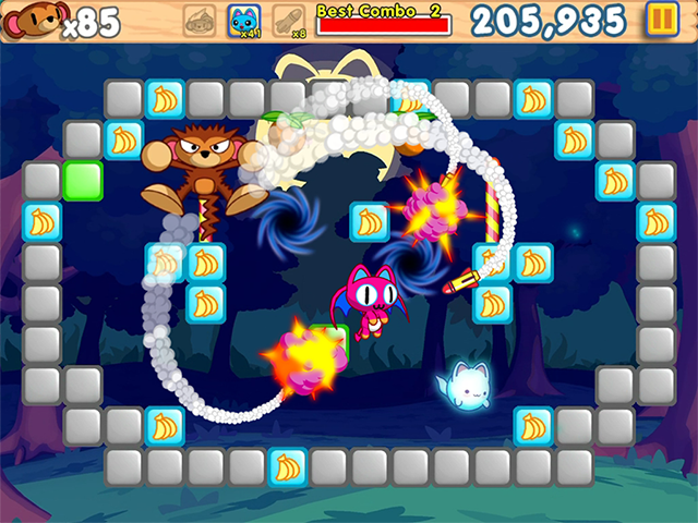 《萌猴扑香蕉》是个画风非常卡通可爱充满儿童气息的益智游戏,你要帮助这只可爱的猴子收集香蕉,同时避开螃蟹、食人鱼等敌人。游戏还是有点难度的,而且还有各具特色的BOSS们等着你来挑战。