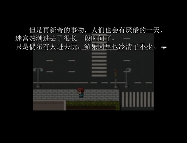 故事讲诉的是一个普通的青年,在他家附近有座私人开办的游乐园,除了有众所周知的游玩项目项目外,最有名的就是里面的一个迷宫场地。这座迷宫似乎运用了什么特殊的技术,内部的结构每天都在变化。但是再新奇的事物,人们也会有厌倦的一天,迷宫热潮过去了很长一段时间,偶尔有人进去玩,游乐园也冷清了很多。而主角也许是听说这家游乐厅很快要关门的小道消息,于是他来到了游乐园。
