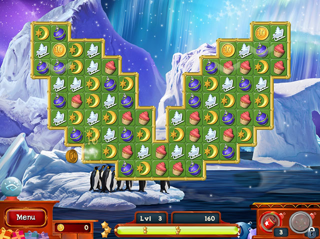 玩遍三消关卡,收集圣诞老人的金币,用美丽的装饰布置你的房子,迎接圣诞节!利用不可思议的能力道具炸掉拼块,拥有一个神奇的圣诞消除节!在限时模式打败计时器,赢得所有金色星星,或者在休闲模式不受限制地玩。每个新关卡都会比前一个更困难,为紧张刺激的时刻做好准备吧!你将拜访北极的圣诞企鹅,登上阿尔卑斯的童话列车,在老磨坊得到更多圣诞老人的黄金。点燃壁炉,装饰圣诞树,准备迎接最舒适的圣诞节。