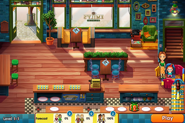 《美味餐厅10:艾米丽的新起点》的基本玩法与系列相同,不过本作里艾米丽有了孩子,在工作的同时还要照顾孩子,他们的工作也更加繁忙了。你要帮助她做好规划、合理安排好时间,帮助他们打理好他们的餐厅吧。