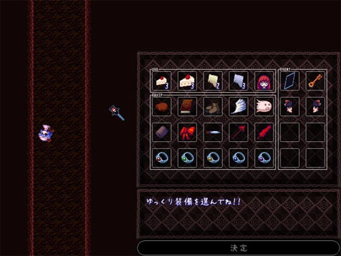 东方题材的ACT动作游戏非常少见,相信游戏中的可爱Q版的画面俘获了众多玩家的心,没错,在选人的画面时候非常有爱,只要用鼠标指着某人,她就会有反应。各人分别有专属武器一把,专属道具一件,而三围(力量,射程,跳跃力)又各有差别。三围方面值得注意的是,咲夜的跳跃力是比其他人都高的。虽然以后会有道具使咲夜的跳跃力进一步提高,但天生的跳跃力使她在前期能轻松翻越不少障碍。