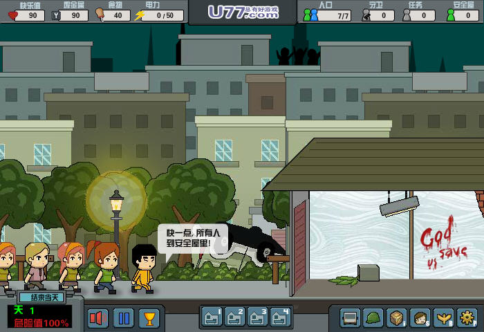 虽然是一款FLASH游戏,但内容的丰富性和策略性,可玩性却十足,可用的道具种类和资源非常丰富,十分考验玩家们的判断决策能力,有一些技巧分享给新人玩家,随着侦察更多地方,会触发搬运发电机任务,然后在地图上面那个发电机标志的地方,派人去那边搜寻,成功就可以拿到发电机,建立电机房,增加100上限的电力值。