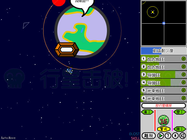 1-6:战斗时对应装备,控制武器攻击模式,生产护卫艇,使用蓄能装置跟感化开发