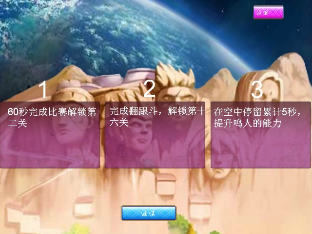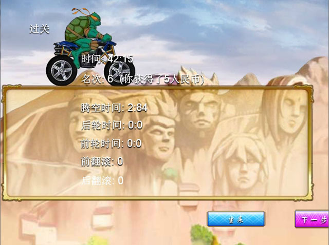 《火影王国单车赛》混合了各个人气动漫人物,如鸣人、柯南、哆啦A梦、葫芦娃等等,游戏虽然只是横版的单车竞速,不过游戏的玩法还是挺丰富的,能做出跳跃、空翻等各种特技,想要完全这些任务也是不容易,去努力解锁各个人物和任务吧。
