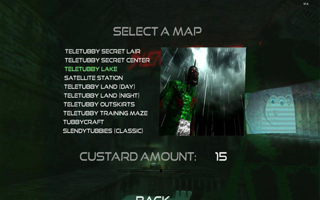 在鬼畜天线宝宝2中,玩家需要面对恐怖的天线宝宝,幼儿节目中的明星在这款游戏中变成了杀人不眨眼的怪物,外形狰狞让人无法直视。不过多人模式下会很欢乐,游戏中会有一些彩蛋,细心的玩家应该可以发现。