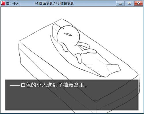 得到了什么地方有名的零食,叫做白色小人。然而睡一觉以后,在陌生的白色房间中醒来,眼前的白色小人跳过来,这到底是个什么玩意……