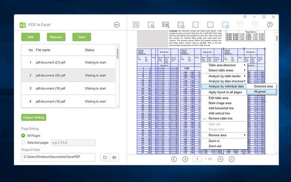 提供更多的输出选项满足您不同的PDF转换需求。强大的PDF表格识别能够帮助您准确地将PDF中的表格提取到Excel或者其他格式。