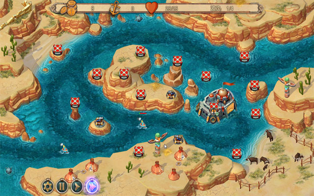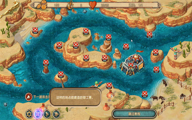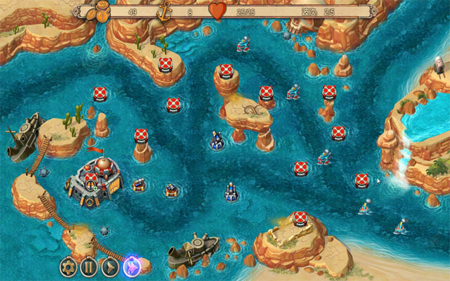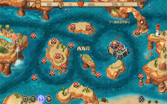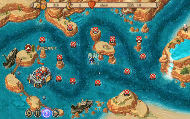 激光炮:该武器能摧毁各种敌人,野战测试的结论是,它对付小型舰船特别有效。初始建造消耗50金币,提升一级需要消耗75金币,直接提升二级需要消耗175金币。