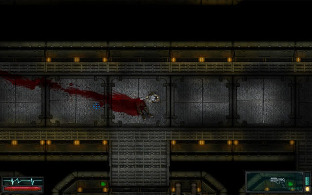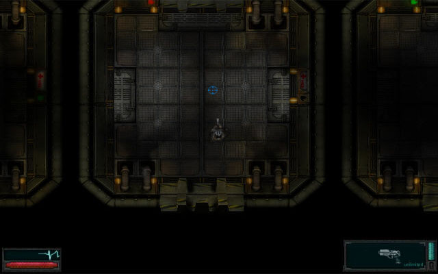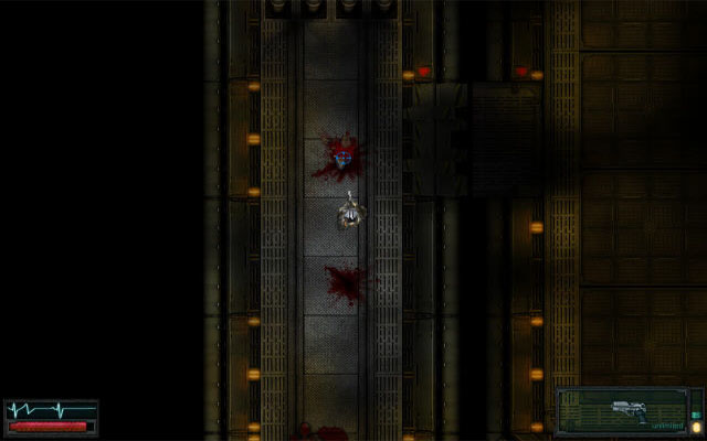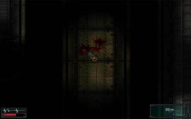除了武器之外,玩家在黑暗的地区探索时,还可以开启手电筒照明,画面右下角有玩家手电筒电池的残量,关掉之后会慢慢恢复。画面右下角则是玩家的血量,血量用玩就会死亡,玩家可以寻找墙壁上的急救装置,对其按下空格键后就会进行恢复动作。另外,在游戏中有一些通讯连接孔,玩家可以利用空格键与主电脑对话,就可以打开一些开关。