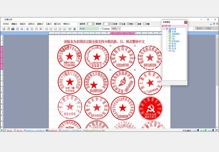 功能包括:艺术印章、公章、私章、阳章、阴章等形式,可以将多个不同效果的印章组合成复杂印章。