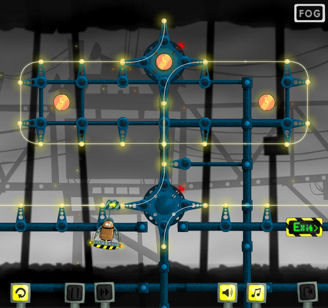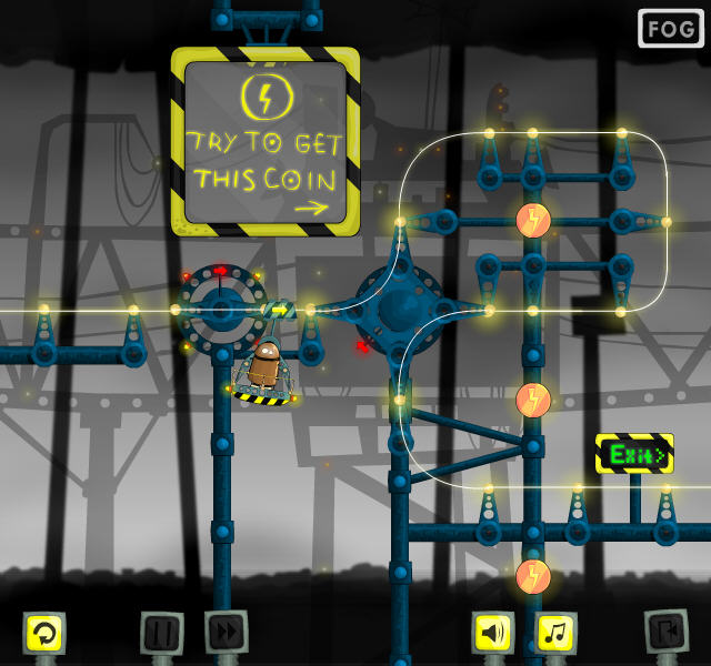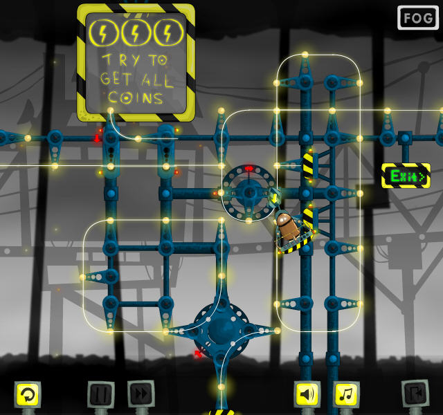 这是一款通过改变线路来控制机器人移动的解谜小游戏,与平时的玩法不同的是,游戏中的线路并非需要玩家直接固定好然后不管,而是还要在机器人移动的过程中不断调整。