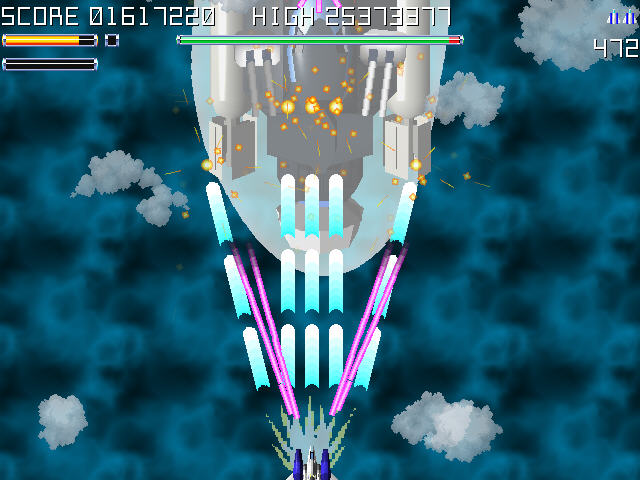 非常爽快的一款打飞机游戏,虽然是弹幕主题,但是实际上更加贴近于街机的风格,初期敌人的子弹攻势并不强,很容易来进行躲避。