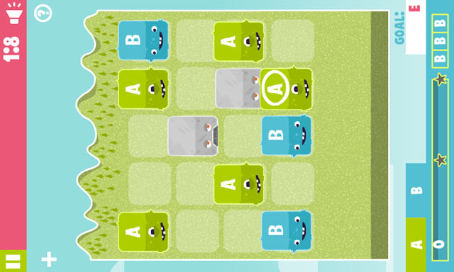 是融合了《三重镇》以及《2048》两款热门游戏的元素的一款益智游戏,主角们都是头顶字母的怪兽,基本规则是3只相同字母的怪兽相连,就能合成1只高一级的怪兽。