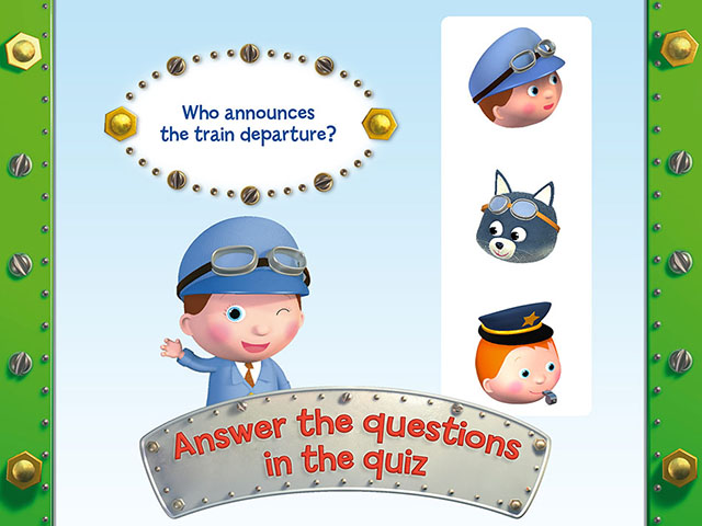 这是个对于学前儿童互动能力的测验,你的孩子将成为一个列车长,进行拼图和着色的游戏,游戏包含了6种语言和语音,而且还可以自己讲故事并录制下来,对丰富学前儿童的知识是个很不错的选择。