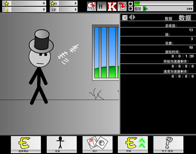 游戏差不多7秒钟给1点金钱和经验,而随便一件装备基本都差不多在100左右的价格,所以如果你不是特别有时间挂机还是别玩这款超慢节奏的游戏。