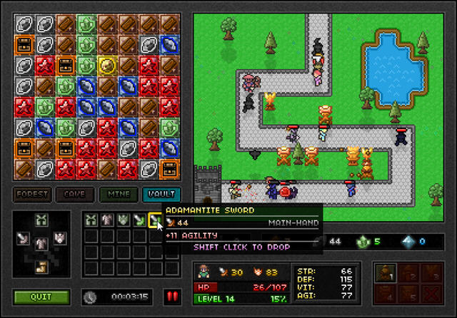 英雄会自动攻击敌人,通过消除宝箱可以收集到一些装备来给英雄装备,英雄在升级后攻击以及防御、血量等也会随之提升。