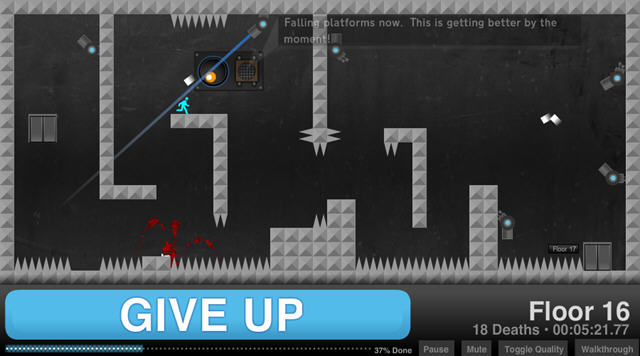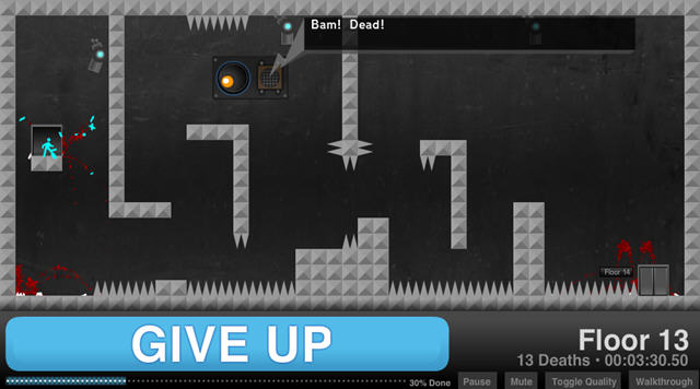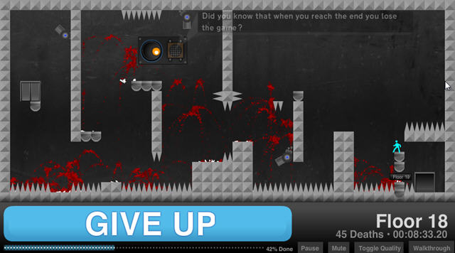 这是一款非常虐心的游戏,游戏里各种尖刺与陷阱不断的挑战着玩家的底线,让玩家一次又一次的死亡与失败,试试看你究竟多久才会放弃吧。