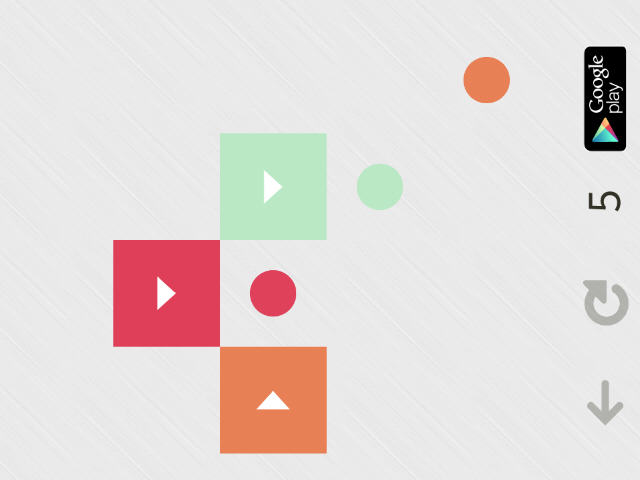 解谜游戏,把所有的方块移动到对应颜色的点上就能过关。方块上的箭头指示这个方块的移动方向,鼠标点一次就动一格。