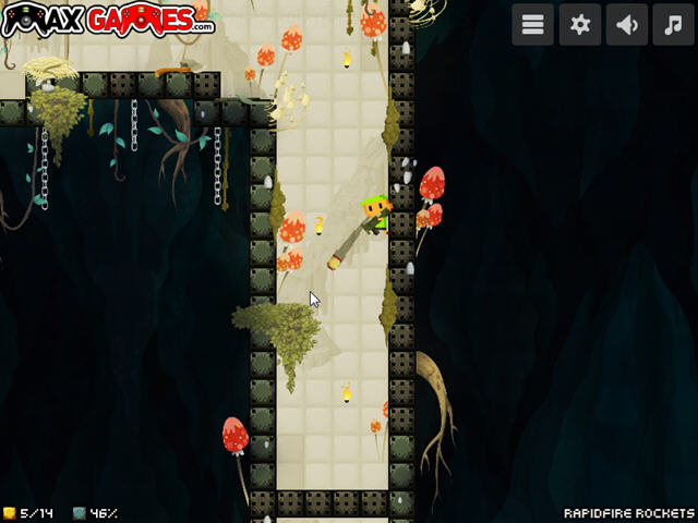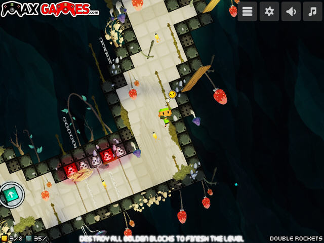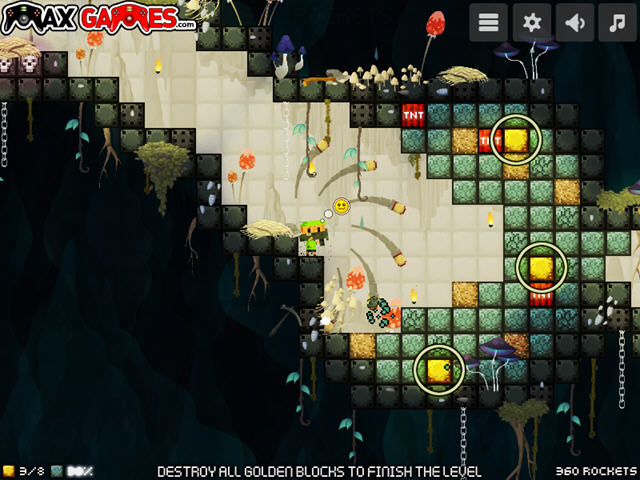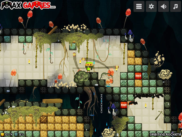 游戏中没有敌人的设定,只有各种一触即死的陷阱,玩家需要利用火箭筒来轰炸所有的石头,并且收集地下的所有金矿。