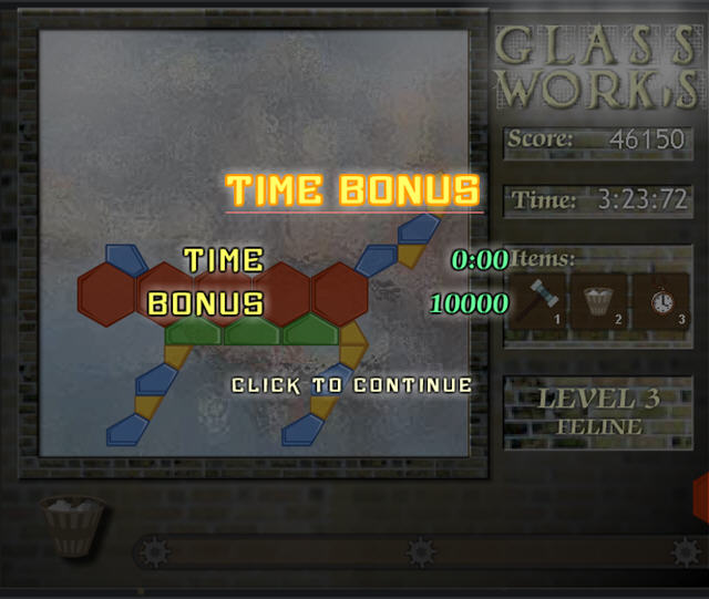 有些玻璃上会有道具奖励,将它们放置到图案当中就能够获得这些道具。有时候运气背到不行会碰上玩家一直得不到想要的玻璃,最后只能眼睁睁看着分扣完。