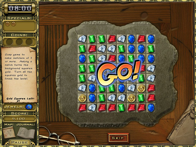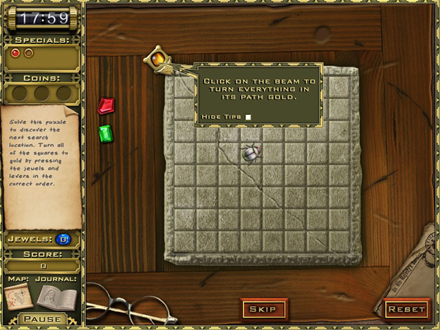 《宝石探秘之谜1》游戏设定在埃及,两个考古学家在这里进行古文物的搜索。游戏的玩法偏向于单词找物,不过在进入每个关卡时还需要先进行宝石类的游戏,需要将所有的瓷砖转化成黄金瓷砖才能解开这个关卡,游戏的单词找物很多设置的还是比较隐蔽的,而提示只能通过找到三个金币来增加一次提示,并且还有时间的限制,连续点错还会扣除时间,因此游戏的难度还是比较高的,喜欢挑战的来试试吧。