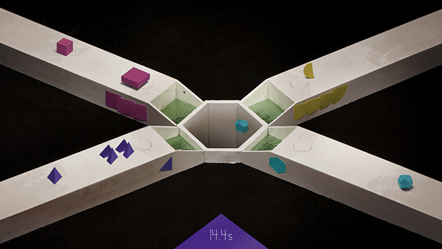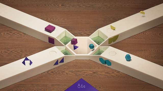 《和声互动》是个很独特的音乐游戏,因为游戏的素材是使用真实的材料拍摄后,利用传统的定格动画制作,因此看起来非常具有质感,能给人一种非常脆弱微妙的感觉。游戏的操作不难,只需要使用E/D/P/L四个键来分别操作四个弹柱将各种形状谈到中间的大孔中即可,玩家要做到眼观四方了,操作起来可并不容易,当然你要找个小伙伴来一起“作弊”也是可以的,去创作自己独一无二的音乐吧。