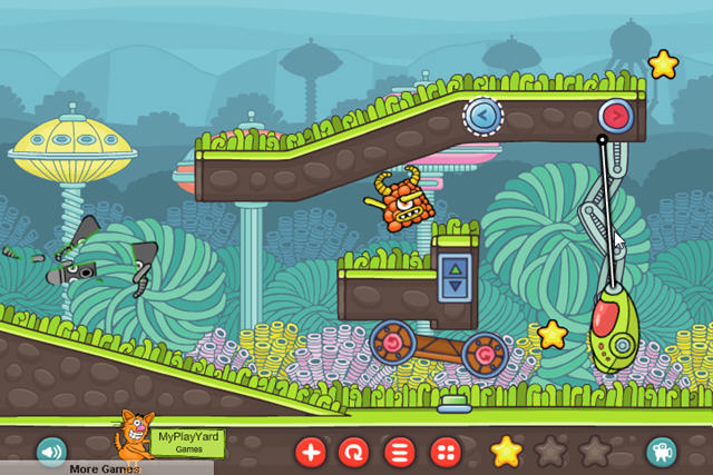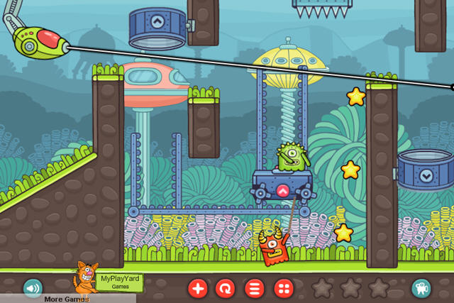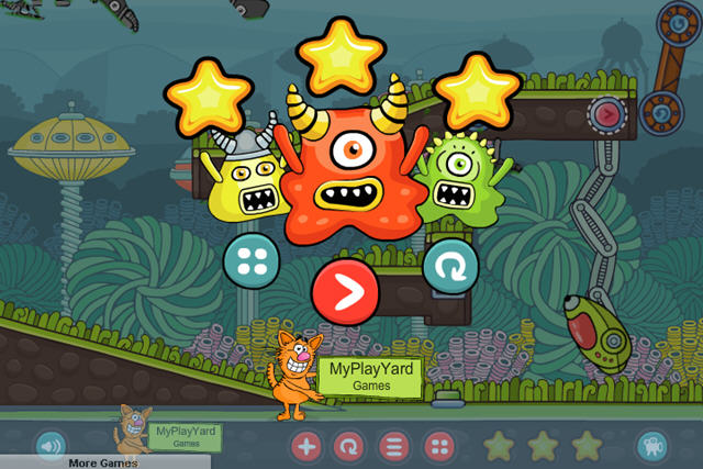 一个物理与激光结合的小游戏,看起来萌萌哒而且无害的怪兽,将会接受玩家无情的摧残,如果你能够收集三颗星星并杀掉所有的怪兽,就算是完美过关。