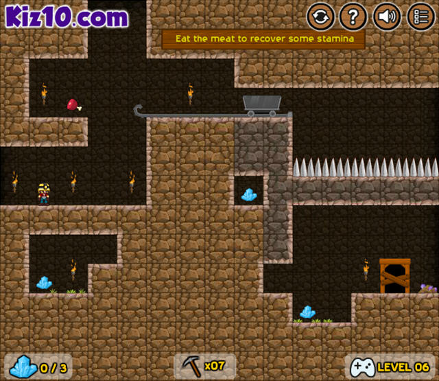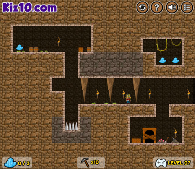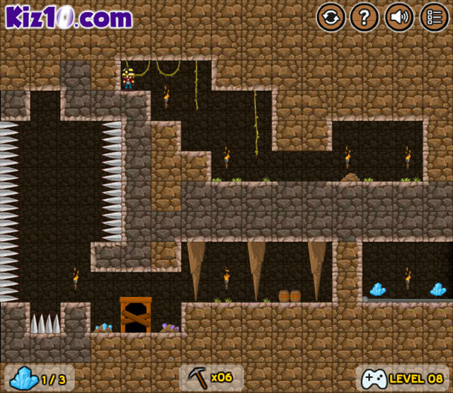 一个挖矿主题的游戏,矿工只要收集齐每关中的3个水晶就可以打开关门并进入下一关,而且矿工还可以利用工具破坏石头来帮助自己前进,但每关中可用的工具是有数量限制的。