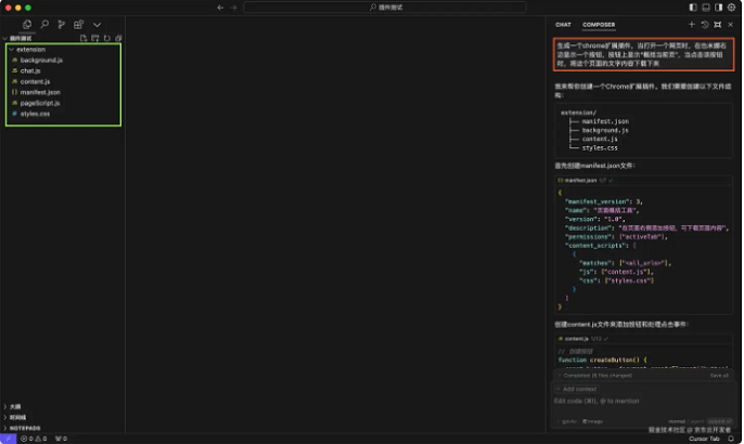 可视化编码:Cursor提供了可视化的编码体验,编码时可以通过可视化工具来构建代码,提高编码效率。