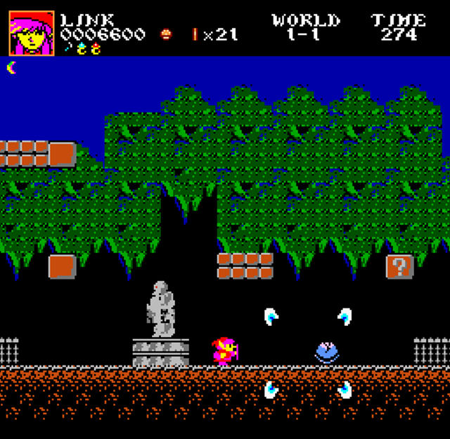 地图风格采用了恶魔城背景+马里奥砖块的设定,马里奥中的1UP奖励都可以在地图中的同样位置找到。