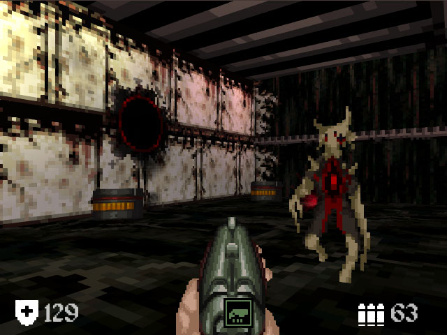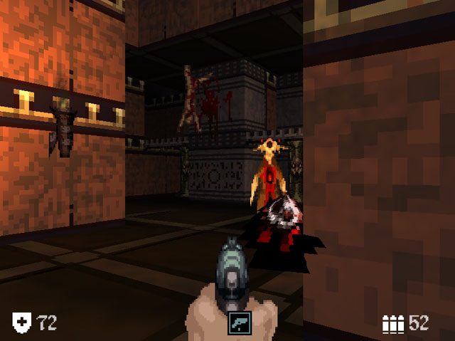 《王国之中》是个像素级画面的第一人称射击游戏,别看画面复古,但游戏里营造的恐怖氛围,有其自己独特的韵味,反而是现在的3D游戏所刻画不来的。这个游戏里的怪物虽然可以打倒,但都是打不死的,过一会就会再次复活,好在这些怪都不会跟很远,而且掉物品的几率很高,游戏难度不大,不过尽快找到前进的道路才是最应该优先考虑的事情。