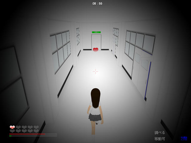 这是一款卡通风格的日本美少女游戏,游戏不是恋爱或者RPG,而是一款躲避幽灵的生存游戏,你需要收集全隐藏在场景中的10个红心才能顺利过关。