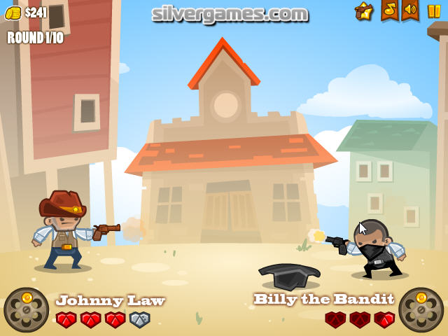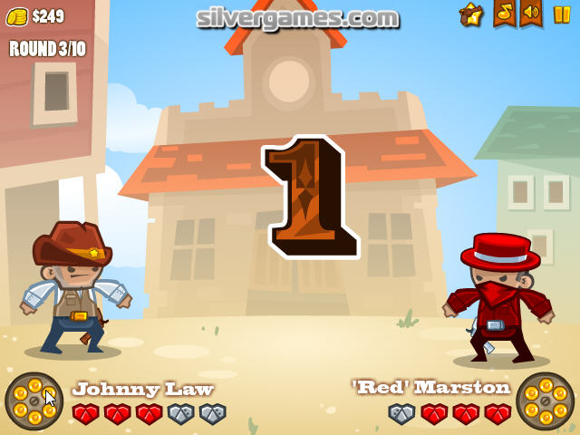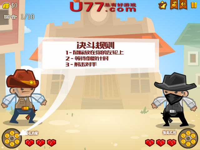 这是一款以美国西部牛仔之间的决斗为主题的枪战游戏,画面、音乐以及玩法都很有点西部风味。