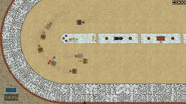 《二轮战车》是个在古罗马竞技场里竞技的赛马游戏,游戏采用的完全俯视的视角,看起来虽然不是很漂亮,不过优点是显得直观,方便操作。游戏不但需要在赛马的过程中做好各种策略方面的选择,也需要在事前配上好马和好的人物,合理分配使用是很考验玩家的策略思考能力的,有兴趣的玩家来试试吧。