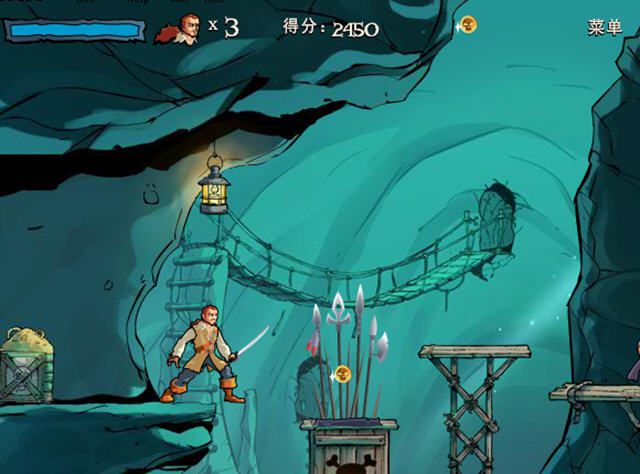 《加勒比海盗》这个经典的系列电影催生了许多的同人游戏诞生,这部游戏就是一个休闲的横版闯关同人游戏,超便捷的操作让你绝对能够轻松上手游戏。
