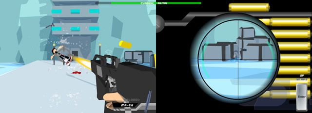 游戏最大的亮点就在于分屏合作上,如果是一个人进行游戏,你可以直接将鼠标拉倒右边的屏幕来帮助队友射击。