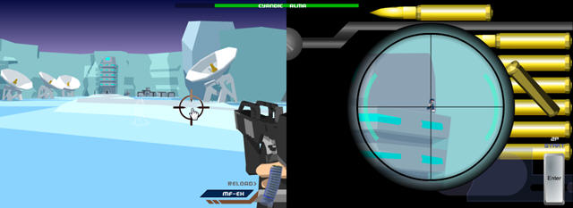 这款看起来非常像是VR战警的游戏,直接上却别有洞天,游戏的两个主角并非只是简单的分屏,玩家还可以帮助AI来进行攻击,保证双方尽可能的存活。