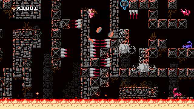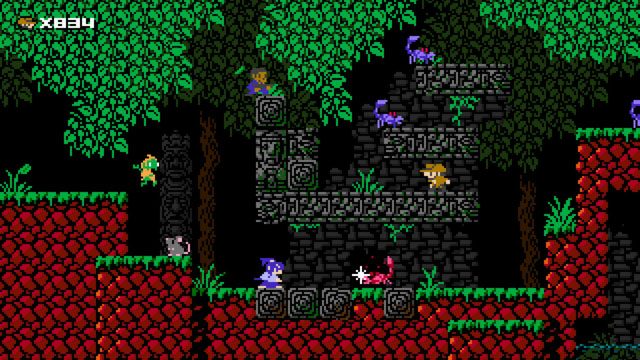 《1001颗钉子》采用了经典的8位风格的图形,它需要你用1001条生命让你去通过100多个关卡,狡猾的陷阱和巧妙的关卡设计保证了各种挑战性,游戏的难度可以说是非常高,但有能让人上瘾般的欲罢不能,这非常考验玩家的技能、反应和忍耐的极限。随着游戏的进行,还能解锁两个隐藏任务,每个人物都有自己的故事,而且还有独特的游戏方式和能力。