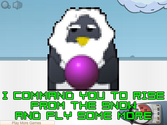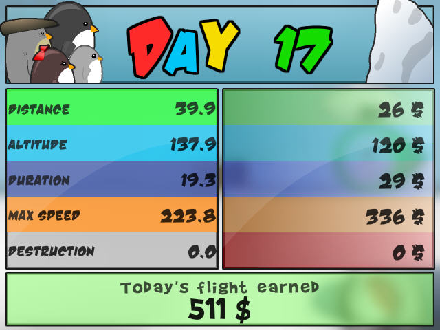 这只想要学会飞翔的企鹅现在又回来了,玩家要帮忙给它装上各种神奇的装置来让它体验飞翔的感觉,各种推进器以及帮忙控制方向的滑翔装置等着你赚钱来购买。
