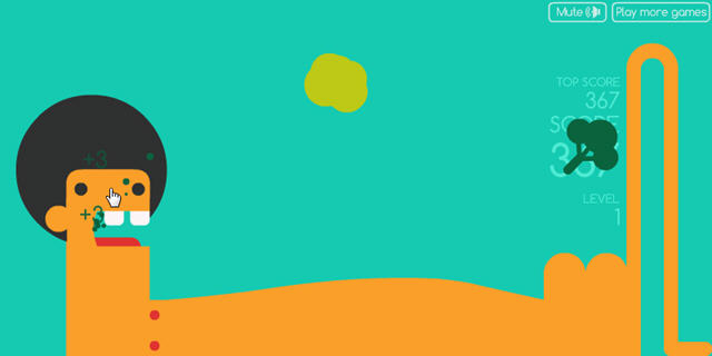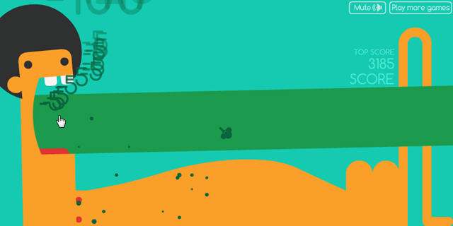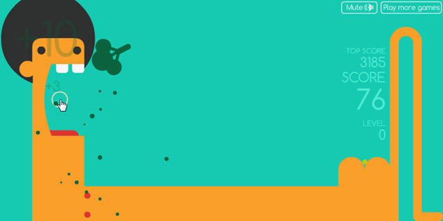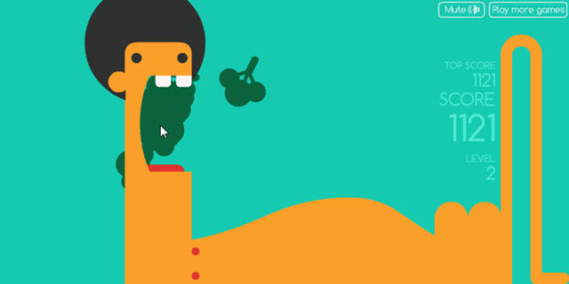 游戏从画面上看就是相当的幽默诙谐,玩起来更是奇葩。游戏里用鼠标操纵一个橙色的人头,吃飞过来的西兰花,但是会放屁,吃到屁后就会把吃到的西兰花全都吐出来。