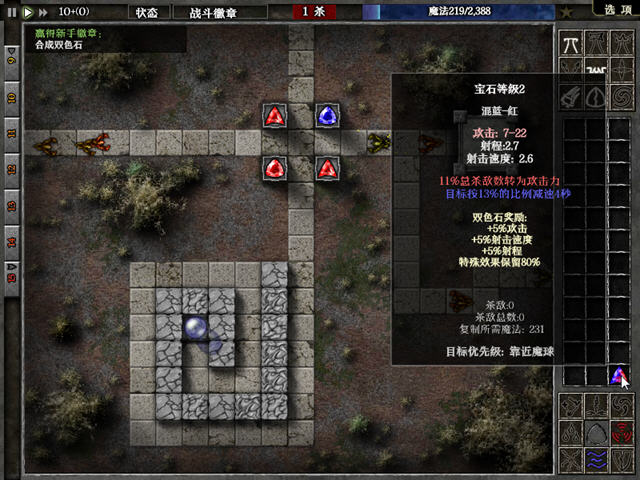 游戏最大的亮点就在于它独特的宝石合成方面,以往的游戏时将攻击塔与减速塔分开,而这款游戏中玩家可以通过将攻击宝石与减速宝石合成,来变成高攻还带减速的攻击塔。