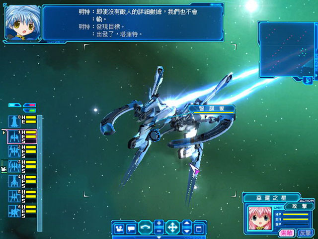 身为司令官「塔克特马亚兹」的玩家,将带领月天使队的 6 位美少女们共同执行任务。本游戏的目的有 2 个,除了对抗已经被镇压的反抗军无人舰队外,另外一个目的就是和月天使队的成员们,以对话或是共同作战的方式提高她们的信赖度以及好感度,保持良好的精神状态。并且,最重要的就是照顾好那选为伴侣的女孩。只要女主角对你的好感度越高,在战斗上的表现也会越好。