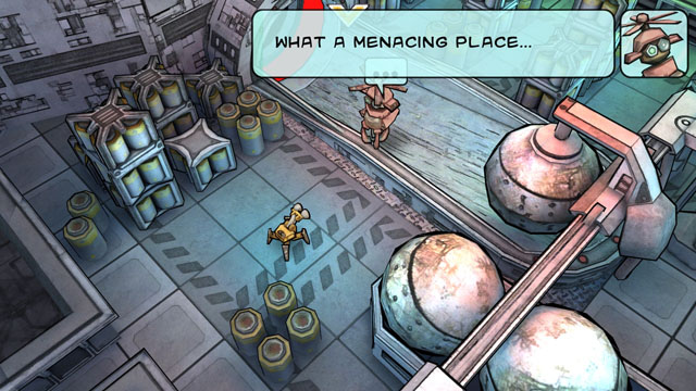 这个黑眼睛,能搬运石块的机器人名叫克拉克,是 Golden Tricycle 游戏团队的益智新作《机器人克拉克 CLARK》中的主角,这款游戏前前后后花了两年的时间才最终完成。