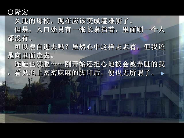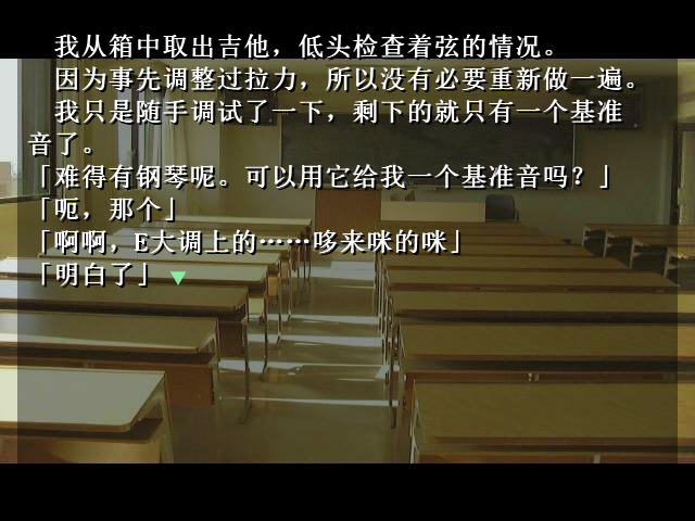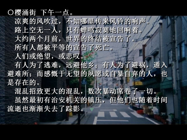 这不是一个充满励志的故事,玩家一开始就要面对无法避免的世界末日,所有人都在用自己独特的方式来渡过自己人生的最后一段时光,学校钢琴室的偶遇让这段故事开始了新的内容。
