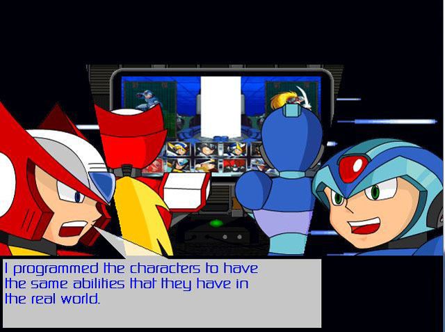 洛克人的同人格斗游戏,玩家可以选择故事模式和对战模式,对战模式可以自由的选择各种人物来进行对战。故事模式则有讲述一定的剧情,但游戏模式主要还是由对战来进行通关的。
