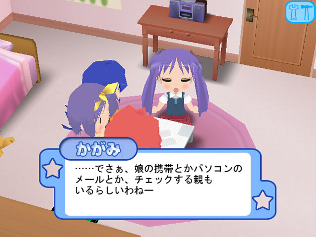 官方出品的幸运星的一个小游戏,玩家可以操控泉此方在家里、学校等各个地方运动,通过做一些此方擅长的事情(比如上课睡觉= =)来获得道具引发下一步的事件。