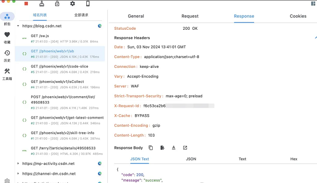 2、普通的http抓包如果请求成功是可以拿到响应体的详细内容的,如下图所示拿到的就是响应体的详情内容